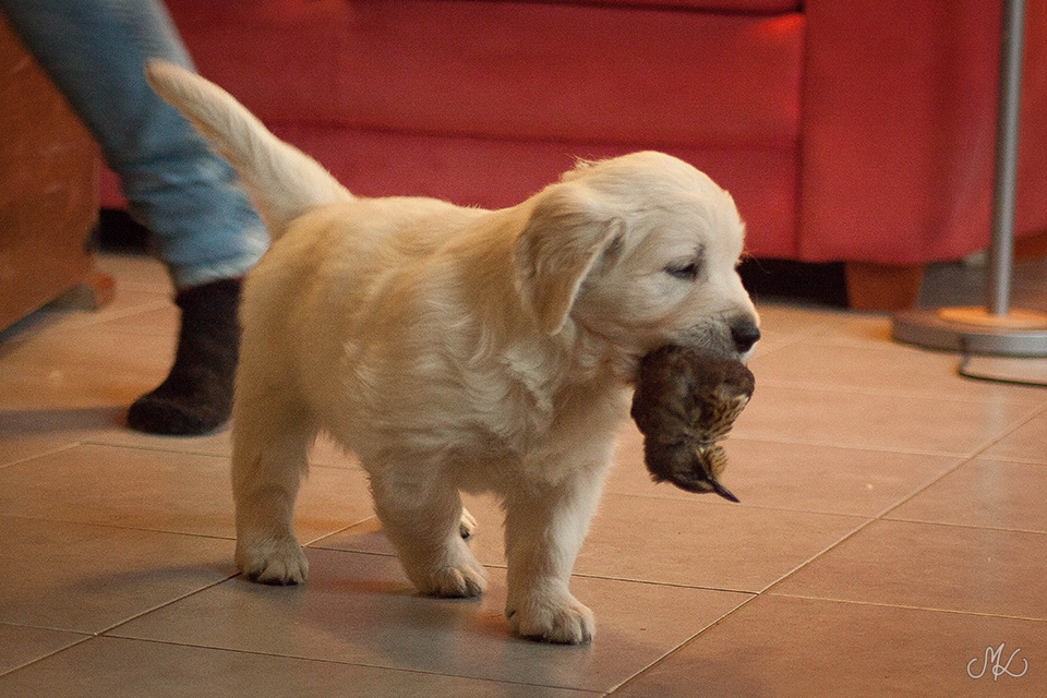 Hugo on iloinen ja aktiivinen noutajan alku, joka omaa hyvän riistavietin. Se kulkee mieluiten aina omistajan mukana ja keräilee kaikkien vieraiden huomion,mutta rauhoittuu myös yksin nokosille työpäivien ajaksi. Hugo oppii nopeasti temput ja rakastaa metsässä vapaana kirmailua.